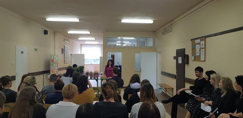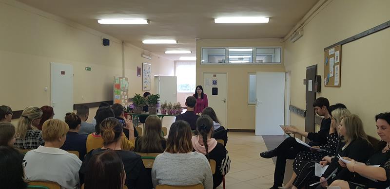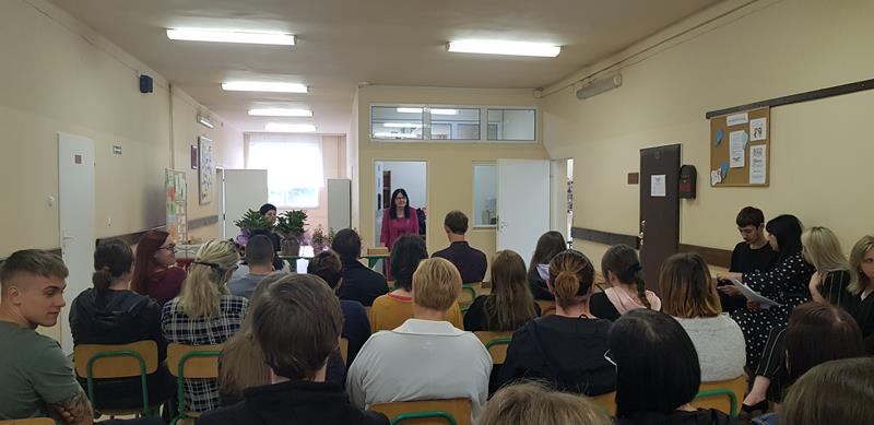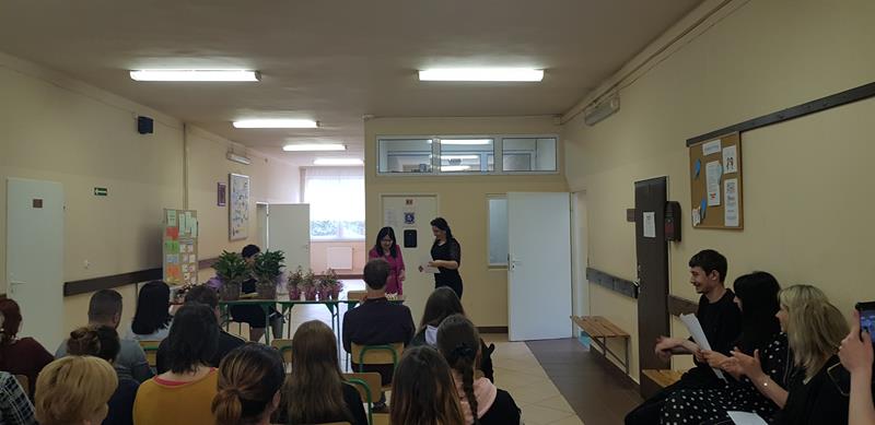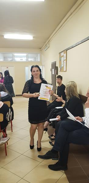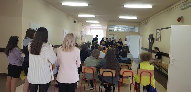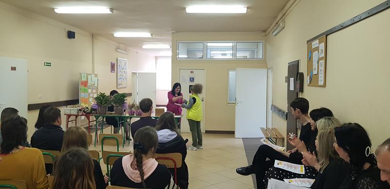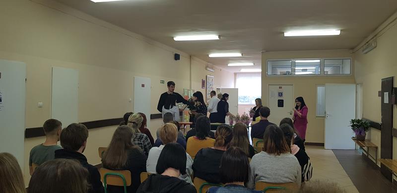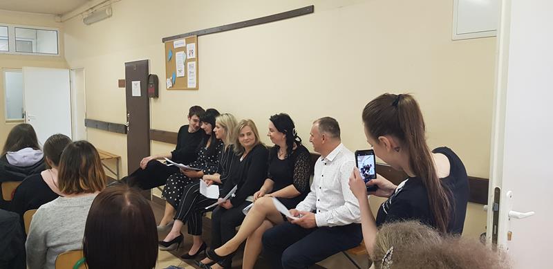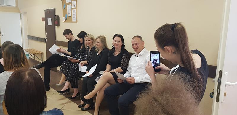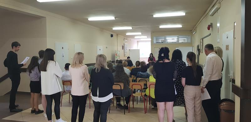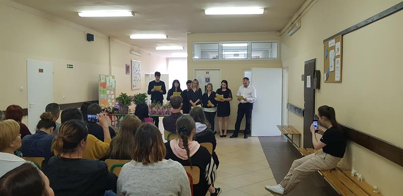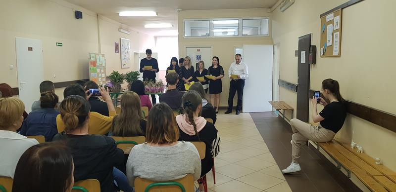 Zanim nastąpił najbardziej oczekiwany przez absolwentów moment – odebrania świadectw, nagród i wyróżnień – zgromadzeni z przyjemnością obejrzeli część artystyczną przygotowaną przez Samorząd Słuchaczy pod opieką p. Reginy Łoboda. Zaprezentowane scenki wprowadziły wszystkich w dobry nastrój, dając jednocześnie okazję do snucia refleksji, wspomnień i przeżywania wzruszeń. Po części artystycznej Pani Dyrektor dokonała podsumowania trzyletniej, pełnej pandemicznych trudów nauki, pogratulowała abiturientom ukończenia szkoły oraz życzyła im pomyślnie zdanych egzaminów maturalnych. Niewątpliwie najmilszym akcentem tej części uroczystości było wręczenie świadectw oraz nagród dla zasłużonych słuchaczy szkoły.