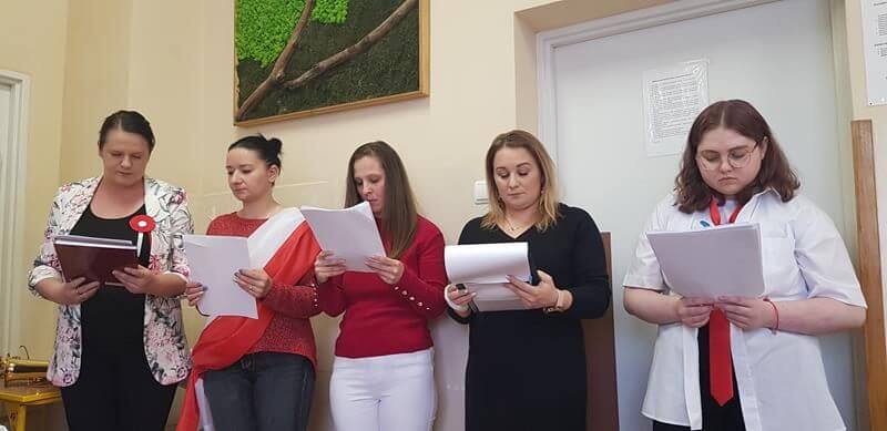 Patriotyczny charakter uroczystości podkreśliły barwy narodowe, dekoracje, a także godna postawa słuchaczy. Samorząd Słuchaczy w swoim montażu słowno – muzycznym przygotował ciekawą, krótką scenkę przedstawiającą rozbiory i nadzieje Polaków na odzyskanie wolności.